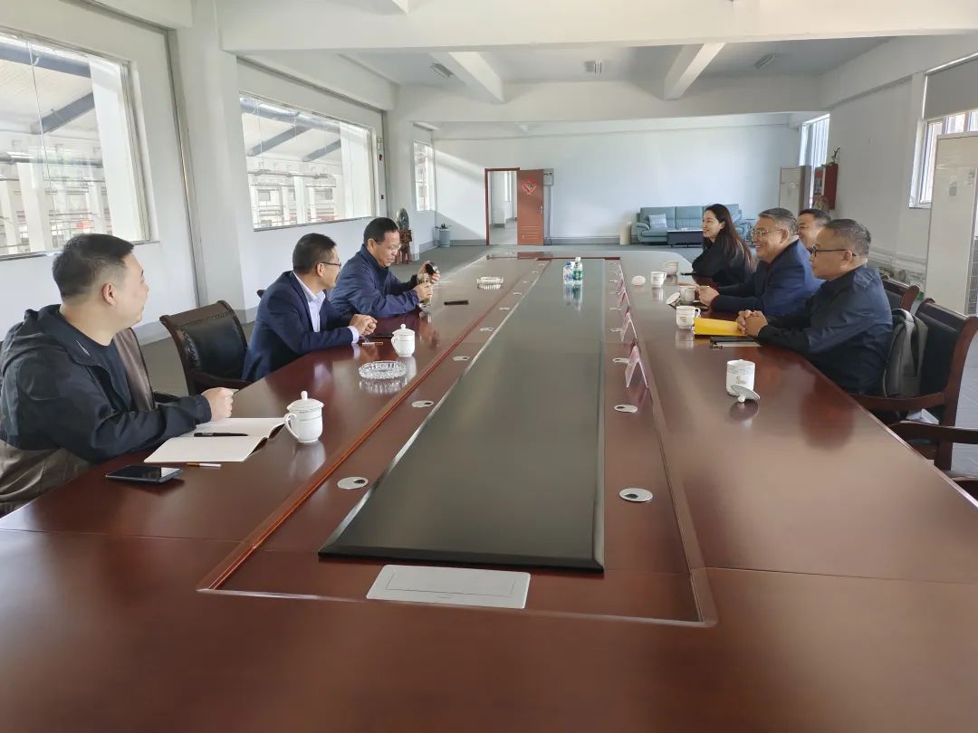 ? ? ? 董事長洪五林歡迎省紡協一行到中天考察,并就企業的經營管理情況進行了詳細介紹,雙方圍繞企業乃至孫村鎮未來的發展規劃展開了深入的討論與交流。